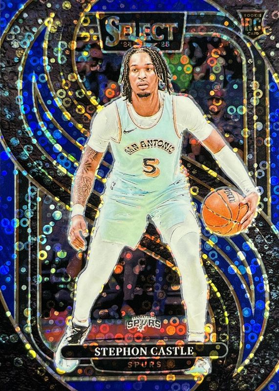 2024-25 NBA Panini Select Stephon Castle # 15/25 Premier Lv. Blue Disco Spurs RC