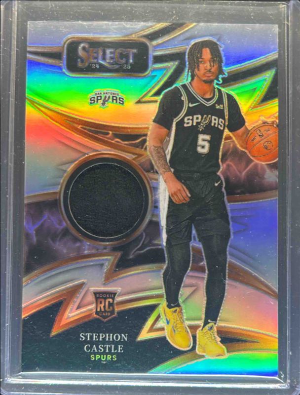 The Stephon Castle 2024 Select #SPK-CAS Sparks Rookie card is 1 of 314 Stephon Castle's card variations in the 2024 Select set being tracked by Sports Card Investor, including Concourse, Courtside, Mezzanine, Premier Level, and Concourse Blue Cracked Ice.