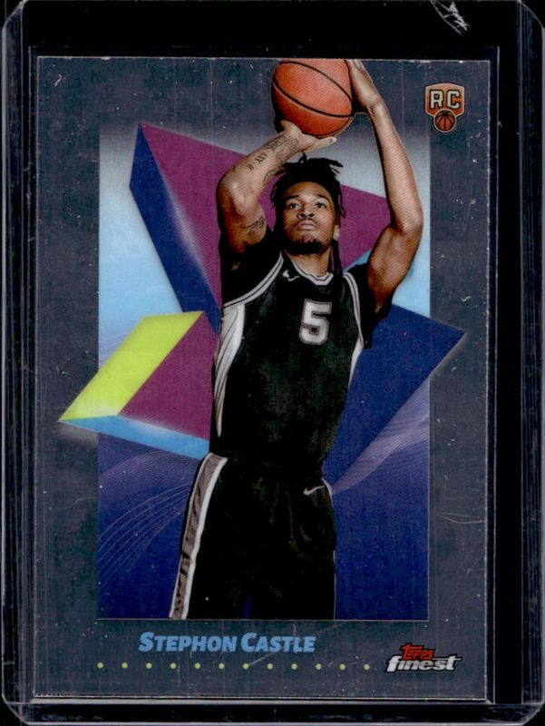 The Stephon Castle 2024 Topps Finest #85 Base Common Rookie card is 1 of 133 Stephon Castle's card variations in the 2024 Topps Finest set being tracked by Sports Card Investor, including Arrivals, Arrivals - Geometric Refractor, Arrivals - Refractor, Arrivals - X-Fractor, and Base Common - Refractor.