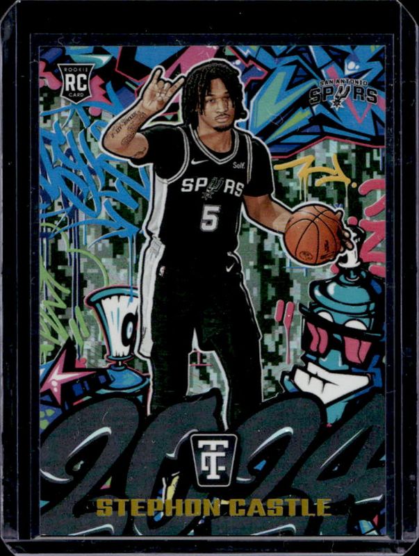 The Stephon Castle 2024 Totally Certified #17 2024 - Camo Platinum Mirror /25 Rookie card is 1 of 90 Stephon Castle's card variations in the 2024 Totally Certified set being tracked by Sports Card Investor, including Base, Bronze Mirror, Maroon Mirror, Purple Mirror, and Mirror.
