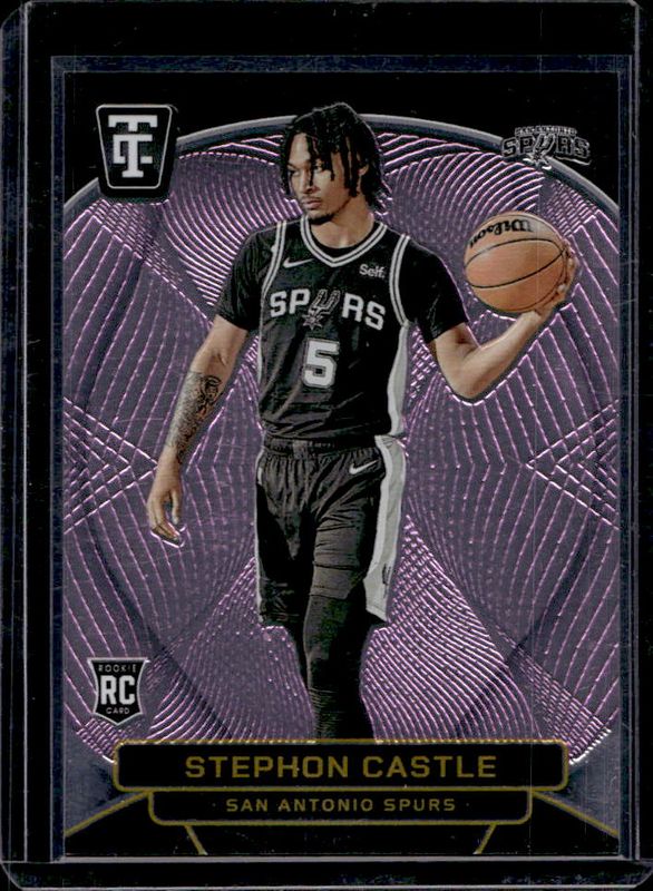 The Stephon Castle 2024 Totally Certified #167 Pink Mirror /125 Rookie card is 1 of 90 Stephon Castle's card variations in the 2024 Totally Certified set being tracked by Sports Card Investor, including Base, Bronze Mirror, Maroon Mirror, Purple Mirror, and Mirror.