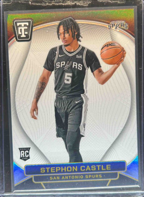 The Stephon Castle 2024 Totally Certified #167 White Platinum Mirror /25 Rookie card is 1 of 90 Stephon Castle's card variations in the 2024 Totally Certified set being tracked by Sports Card Investor, including Base, Bronze Mirror, Maroon Mirror, Purple Mirror, and Mirror.