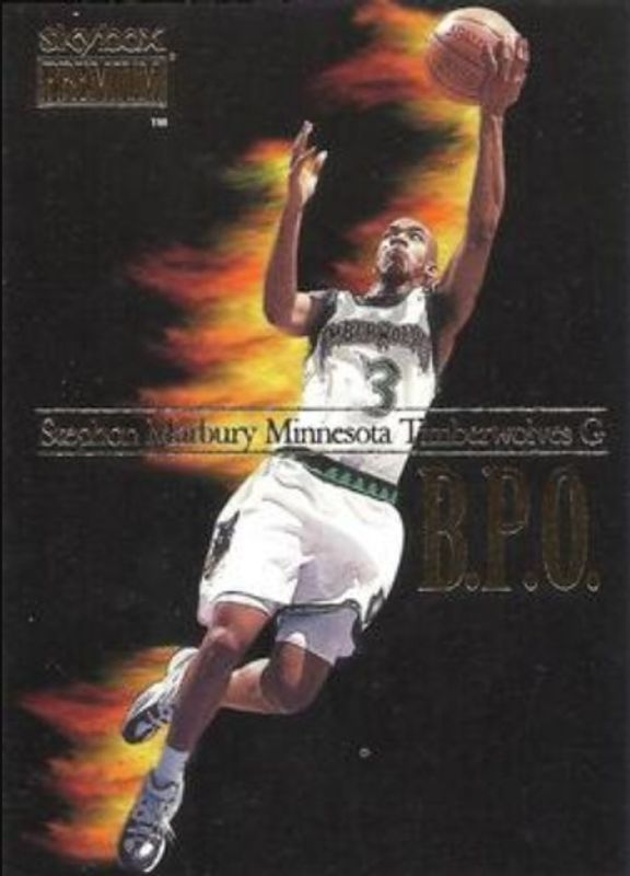The Stephon Marbury 1998 Skybox Premium #3-BPO B.P.O. card is 1 of 16 Stephon Marbury's card variations in the 1998 Skybox Premium set being tracked by Sports Card Investor, including #215 Base, #48 Base, #215 Ninety Fine - Star Rubies /50, #48 Star Rubies /50, and #215 Star Rubies /50.