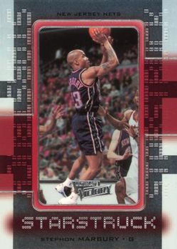 The Stephon Marbury 2000 Upper Deck Ultimate Victory #S5 Starstruck card is 1 of 5 Stephon Marbury's card variations in the 2000 Upper Deck Ultimate Victory set being tracked by Sports Card Investor, including Base /1500, Victory Collection /350, Ultimate Collection /100, and Ultimate Victory /25.