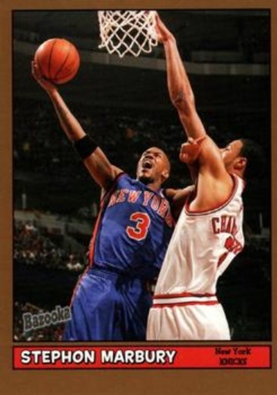 The Stephon Marbury 2005 Bazooka #64 Gold card is 1 of 5 Stephon Marbury's card variations in the 2005 Bazooka set being tracked by Sports Card Investor, including Base, Minis, Blue /5, and Signs.