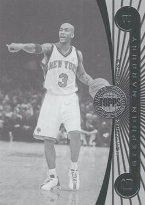 The Stephon Marbury 2005 Topps First Row #94 Black & White /225 card is 1 of 11 Stephon Marbury's card variations in the 2005 Topps First Row set being tracked by Sports Card Investor, including Base /549, Gold Rainbow /325, Gold /100, Sepia /25, and Baseline /149.