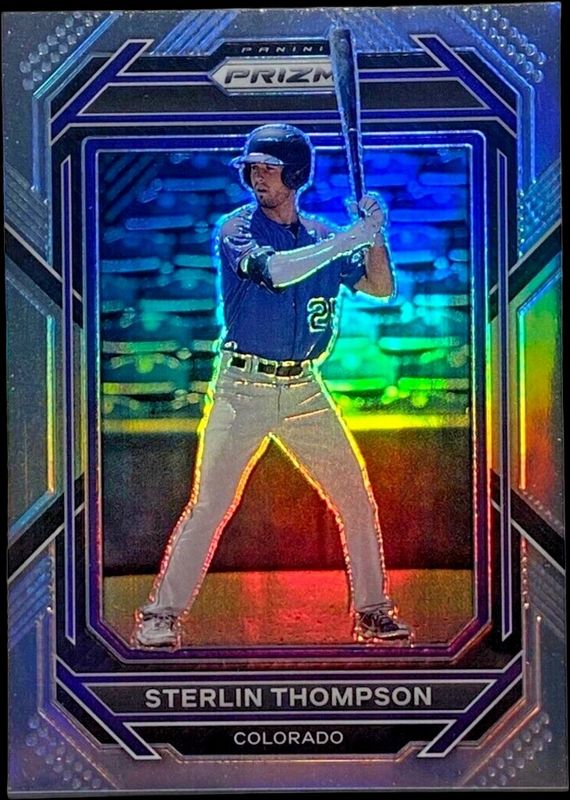 The Sterlin Thompson 2023 Prizm #153 Silver card is 1 of 25 Sterlin Thompson's card variations in the 2023 Prizm set being tracked by Sports Card Investor, including Base, Blue Ice, Giraffe, Green Ice, and Hyper.