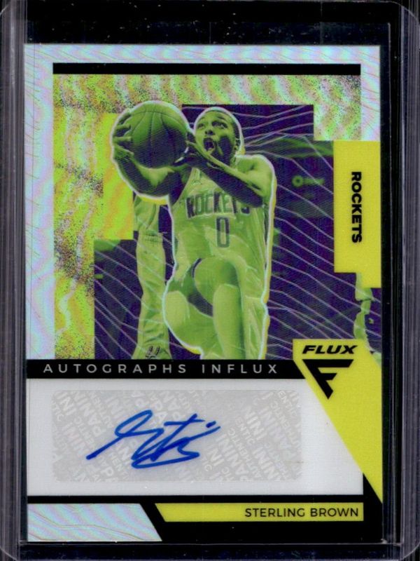 The Sterling Brown 2020 Flux #AI-STB Autographs Influx - Silver card is 1 of 43 Sterling Brown's card variations in the 2020 Flux set being tracked by Sports Card Investor, including Base, Black Pulsar, Blue Cracked Ice, Blue Pulsar, and Fanatics Cracked Ice.