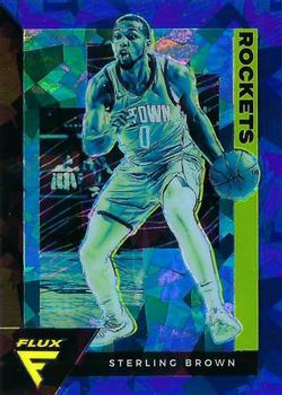 The Sterling Brown 2020 Flux #66 Blue Cracked Ice card is 1 of 43 Sterling Brown's card variations in the 2020 Flux set being tracked by Sports Card Investor, including Base, Black Pulsar, Blue Pulsar, Fanatics Cracked Ice, and Fanatics Green Cracked Ice.