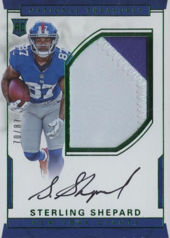 STERLING SHEPARD 2016 NATIONAL TREASURES JERSEY NUMBER GREEN PATCH AUTO RC /87