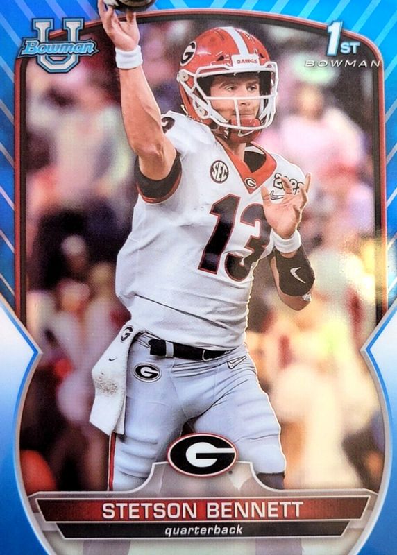 2022 Bowman University Chrome Blue Refractor /199 Stetson Bennett #39