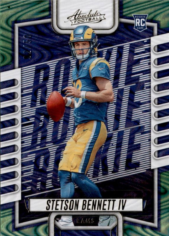 This card is 1 of 17 Stetson Bennett IV's card variations in the 2023 Absolute set being tracked by Sports Card Investor, including Base, Red Squares /499, Orange Mosaic /299, Spectrum /275, and Blue Diamonds /199.