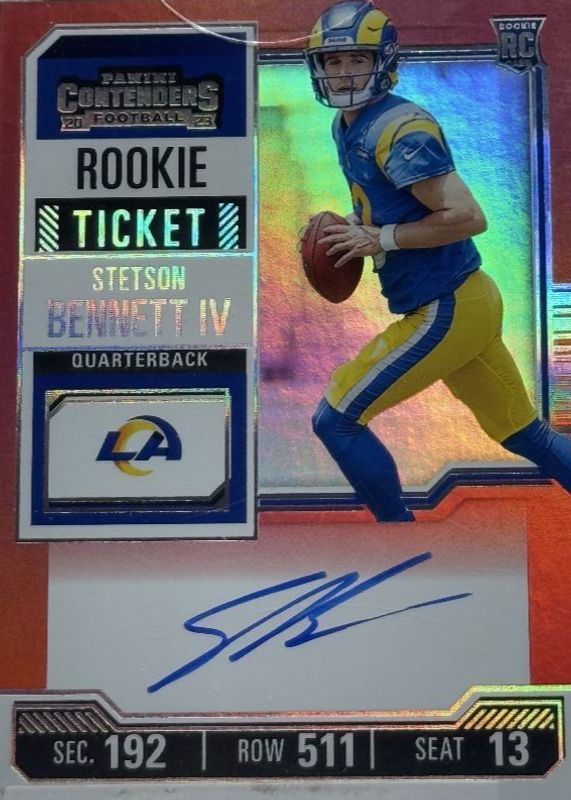 STETSON BENNETT IV 2023 CONTENDERS ROOKIE TICKET RED ZONE VARI. RC AUTO Q3644
