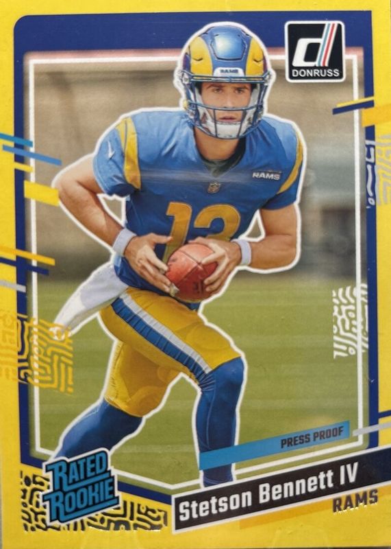 2023 Panini Donruss Stetson Bennett IV Press Proof Yellow #358 Rookie RC Rams