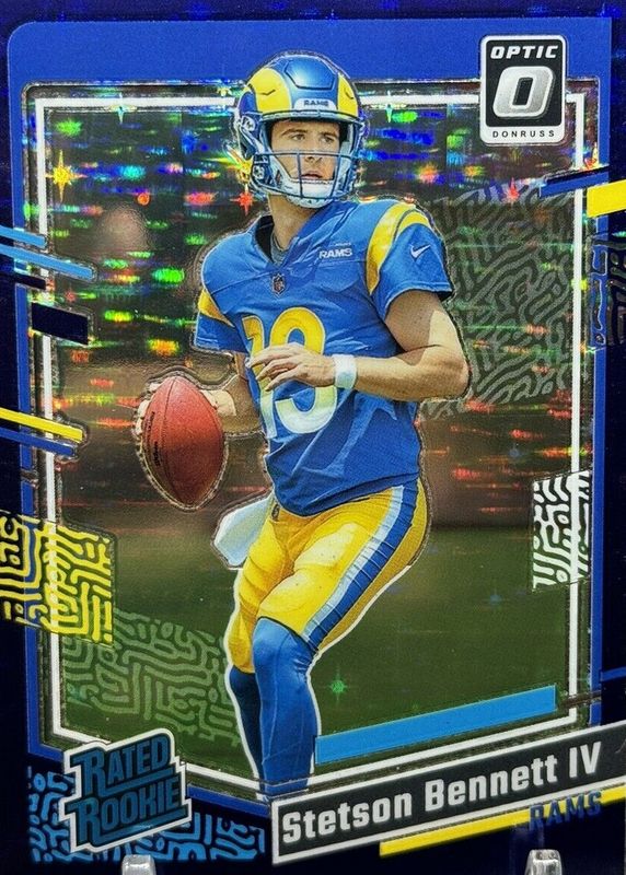 This card is 1 of 53 Stetson Bennett IV's card variations in the 2023 Optic set being tracked by Sports Card Investor, including Base, Blue Hyper, Blue Scope, Green Hyper, and Green Velocity.