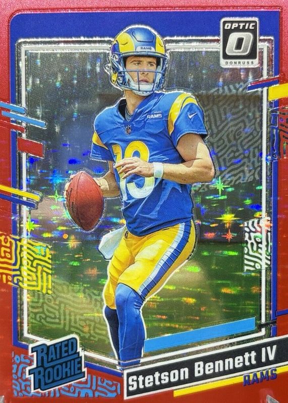 The Stetson Bennett IV 2023 Optic #267 Red Stars /(SSP) Rookie card in Raw condition has not changed in price in the last 30 days and was last sold for $5.50 .