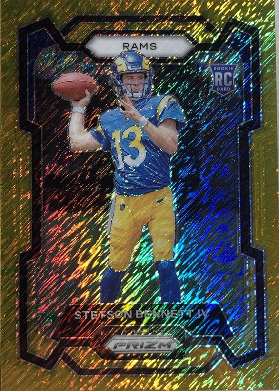 The Stetson Bennett IV 2023 Prizm #358 Gold Shimmer /10 Rookie card in Raw condition has not changed in price in the last 30 days and was last sold for $157.50 .