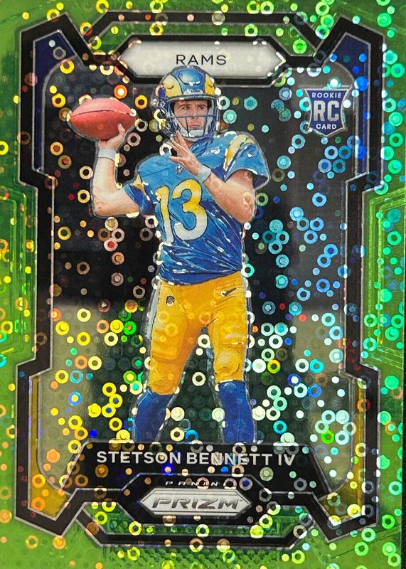 The Stetson Bennett IV 2023 Prizm #358 No Huddle Neon Green /5 Rookie card in Raw condition has not changed in price in the last 30 days and was last sold for $299.99 .