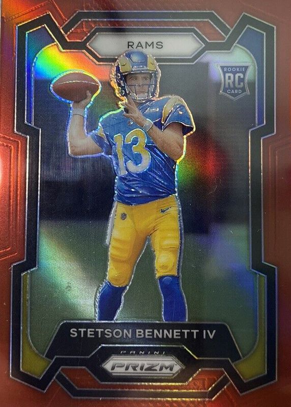 The Stetson Bennett IV 2023 Prizm #358 Red /(SSP) Rookie card in Raw condition has not changed in price in the last 30 days and was last sold for $18.50 .
