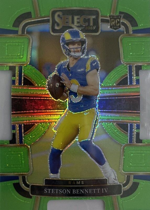 Stetson Bennett IV 2023 Panini Select Neon Green /599 SP RC Los Angeles Rams 55