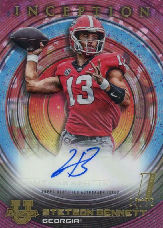 Stetson Bennett IV 2022 Bowman University Inception #BIA-SB Autographs - Fuchsia Foil /75 (1st) RAW Price Guide