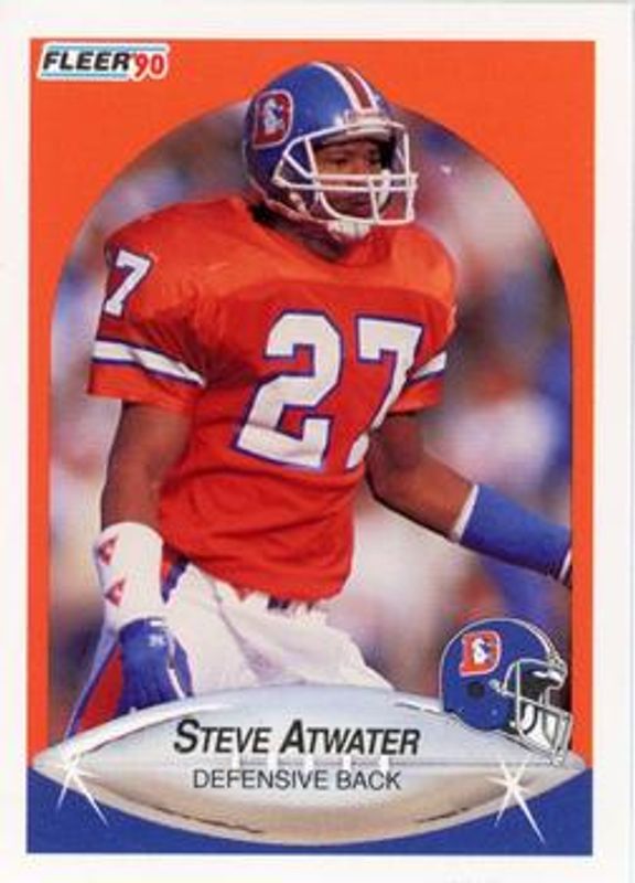 The Steve Atwater 1990 Fleer #18b Base card is 1 of 2 Steve Atwater's card variations in the 1990 Fleer set being tracked by Sports Card Investor, including Base.