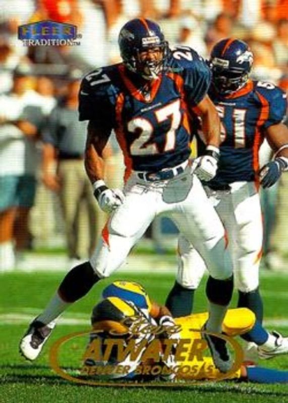 The Steve Atwater 1998 Fleer Tradition #185 Base card is 1 of 2 Steve Atwater's card variations in the 1998 Fleer Tradition set being tracked by Sports Card Investor, including Heritage /125.