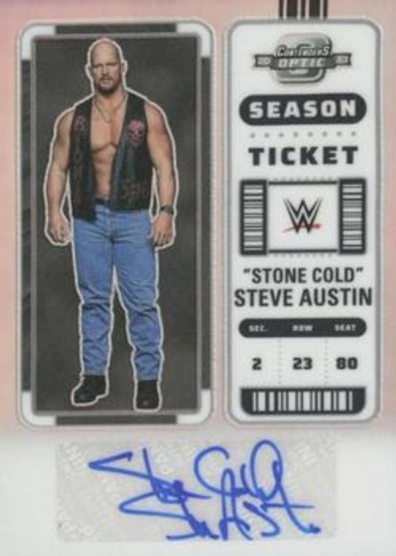 Steve Austin 2023 Chronicles WWE #CO-SCA Contenders Optic Season Ticket Signatures RAW Price Guide