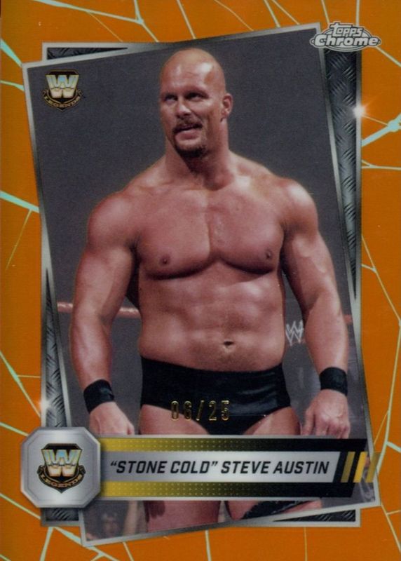 Best Prices Available For Sale of Steve Austin 2025 Topps Chrome WWE #6 Orange Refractor /25