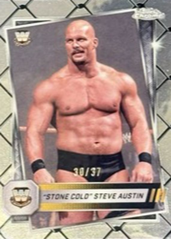 The Steve Austin 2025 Topps Chrome WWE #6 Steel Cage Refractor /37 card in Raw condition has not changed in price in the last 30 days and was last sold for $33.66 .