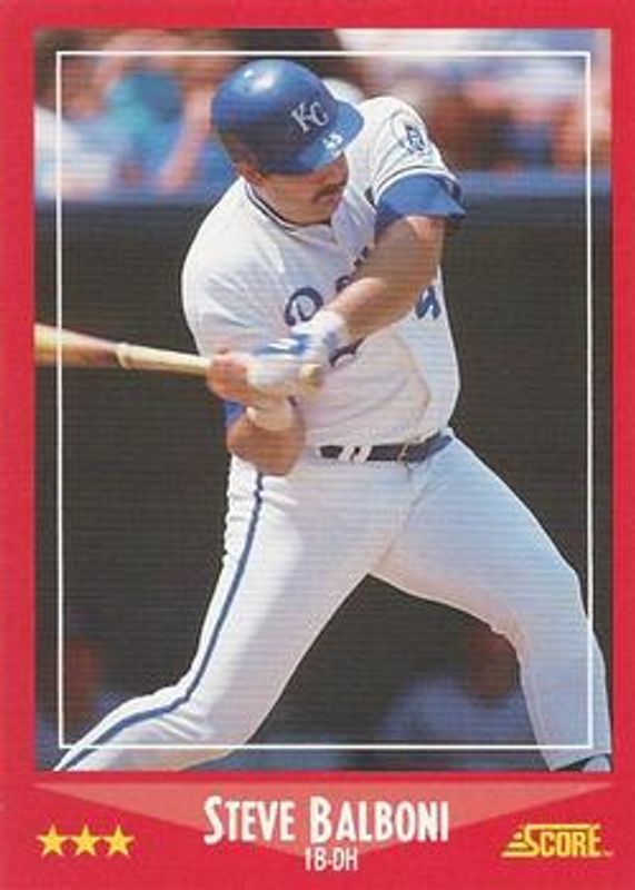 The Steve Balboni 1988 Score #273 Base card is 1 of 2 Steve Balboni's card variations in the 1988 Score set being tracked by Sports Card Investor, including Glossy.