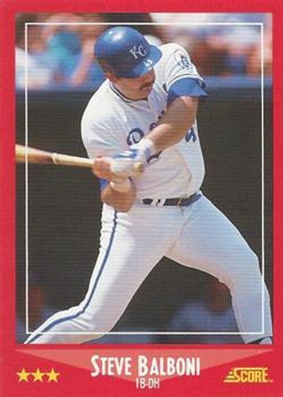 The Steve Balboni 1988 Score #273 Glossy card is 1 of 2 Steve Balboni's card variations in the 1988 Score set being tracked by Sports Card Investor, including Base.