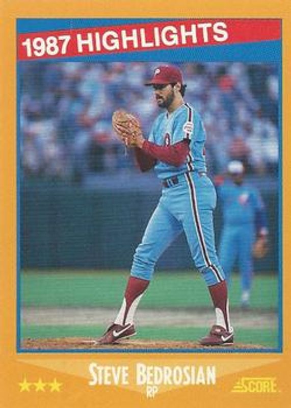 The Steve Bedrosian 1988 Score #656 Base card is 1 of 4 Steve Bedrosian's card variations in the 1988 Score set being tracked by Sports Card Investor, including #161 Base, #161 Glossy, and #656 Glossy.