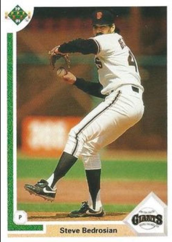 The Steve Bedrosian 1991 Upper Deck #422e Base card is 1 of 3 Steve Bedrosian's card variations in the 1991 Upper Deck set being tracked by Sports Card Investor, including #422 Base, and #738 Base.