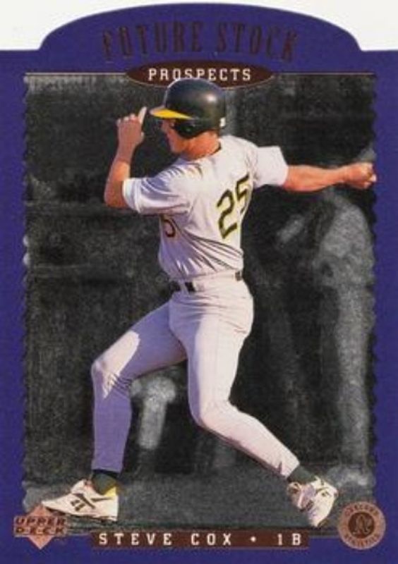 The Steve Cox 1996 Upper Deck #FS7 Future Stock Prospects Rookie card is 1 of 2 Steve Cox's card variations in the 1996 Upper Deck set being tracked by Sports Card Investor, including Base.