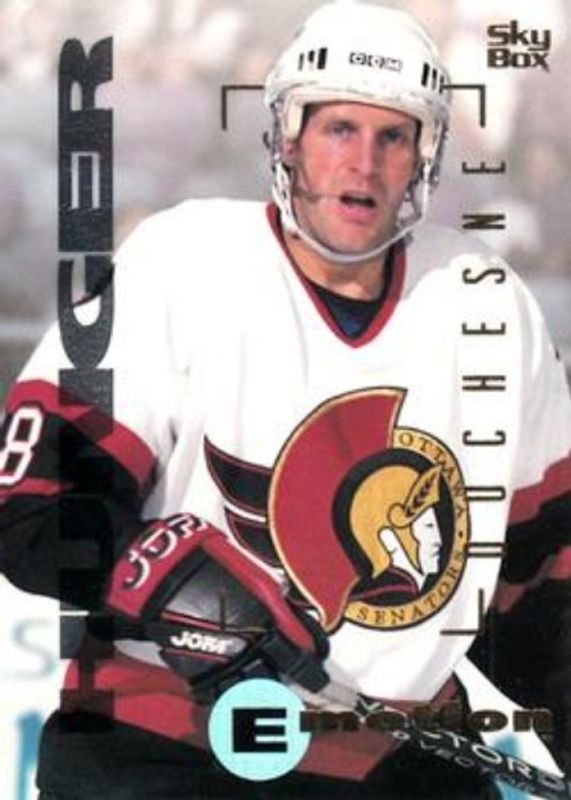 Other popular players in the 1995 Skybox E-Motion set include Alexei Yashin, Alexei Zhamnov, Eric Lindros, Jeremy Roenick, and Joe Sakic.