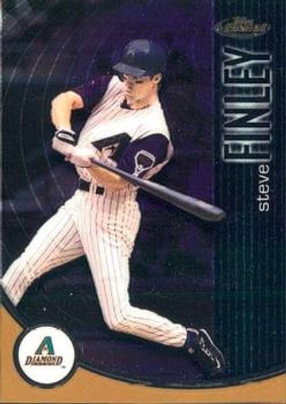 The Steve Finley 2001 Topps Finest #19 Base /999 card is 1 of 2 Steve Finley's card variations in the 2001 Topps Finest set being tracked by Sports Card Investor, including Refractors /499.