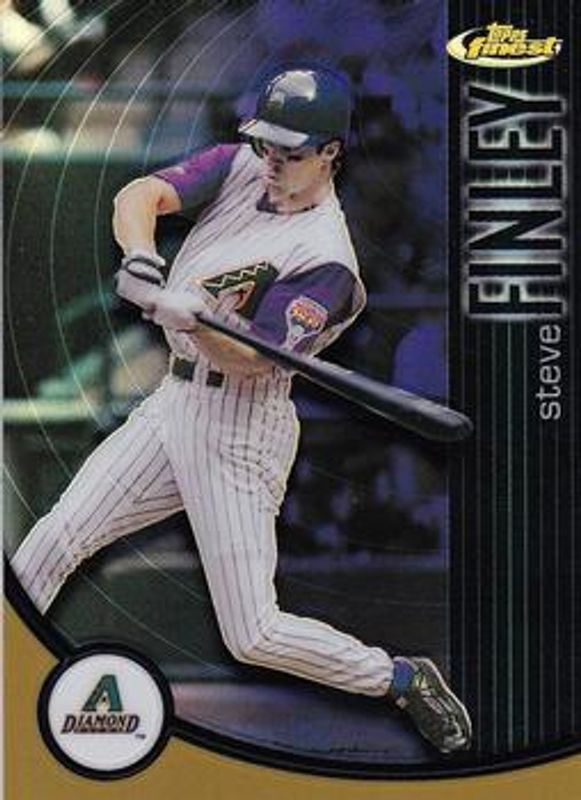 The Steve Finley 2001 Topps Finest #19 Refractors /499 card is 1 of 2 Steve Finley's card variations in the 2001 Topps Finest set being tracked by Sports Card Investor, including Base /999.