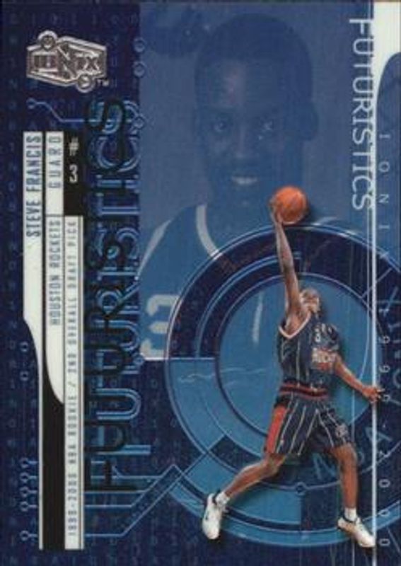 The Steve Francis 1999 Upper Deck Ionix #62 Base /3500 Rookie card is 1 of 5 Steve Francis' card variations in the 1999 Upper Deck Ionix set being tracked by Sports Card Investor, including Reciprocal /100, Awesome Powers, UD Authentics, and Warp Zone.