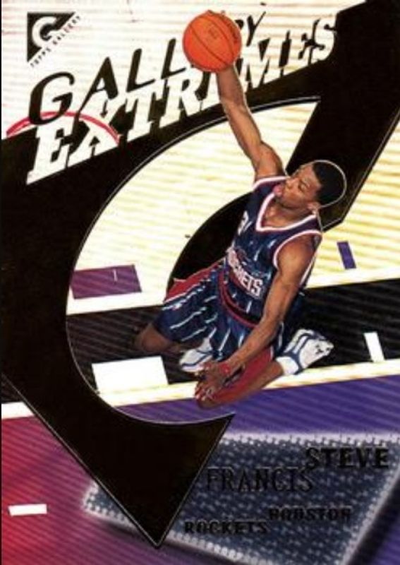 The Steve Francis 2000 Topps Gallery #E8 Gallery Extremes card is 1 of 7 Steve Francis' card variations in the 2000 Topps Gallery set being tracked by Sports Card Investor, including #116 Base /999, #50 Base /999, #H3 Heritage, #GS-SF Signatures, and #H3 Heritage - Proof /250.