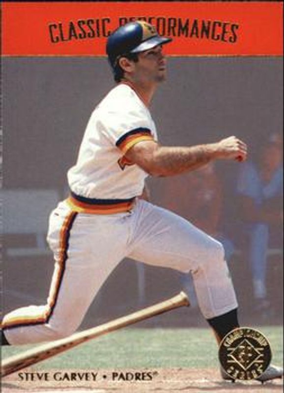 The Steve Garvey 1995 SP Championship #CP10 Classic Performances card is 1 of 4 Steve Garvey's card variations in the 1995 SP Championship set being tracked by Sports Card Investor, including Base, Die Cuts, and Classic Performances Die Cuts.
