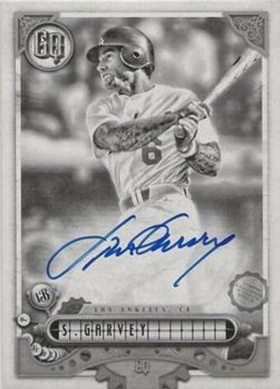 The Steve Garvey 2022 Topps Gypsy Queen #GQA-SG GQ Autographs - Black & White /50 card is 1 of 9 Steve Garvey's card variations in the 2022 Topps Gypsy Queen set being tracked by Sports Card Investor, including GQ Autographs, GQ Autographs - Missing Nameplate, GQ Autographs - Indigo /150, GQ Autographs - Blue /99, and Autographs Garments /50.