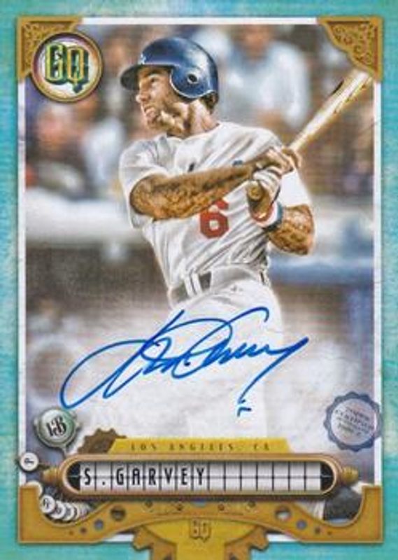 The Steve Garvey 2022 Topps Gypsy Queen #GQA-SG GQ Autographs - Blue /99 card is 1 of 9 Steve Garvey's card variations in the 2022 Topps Gypsy Queen set being tracked by Sports Card Investor, including GQ Autographs, GQ Autographs - Missing Nameplate, GQ Autographs - Indigo /150, Autographs Garments /50, and GQ Autographs - Black & White /50.