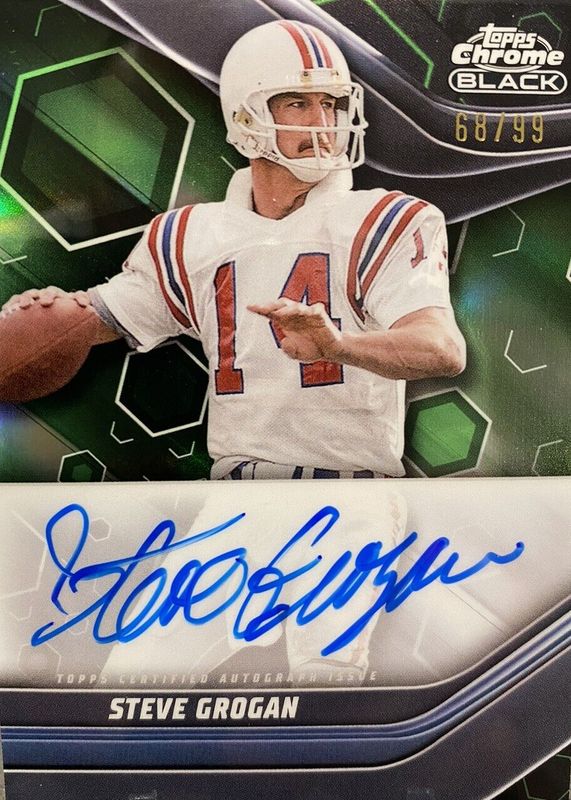 Steve Grogan 2023 Topps Composite #TCBA-SGR Chrome Black Autographs - Green Refractor /99 RAW Price Guide