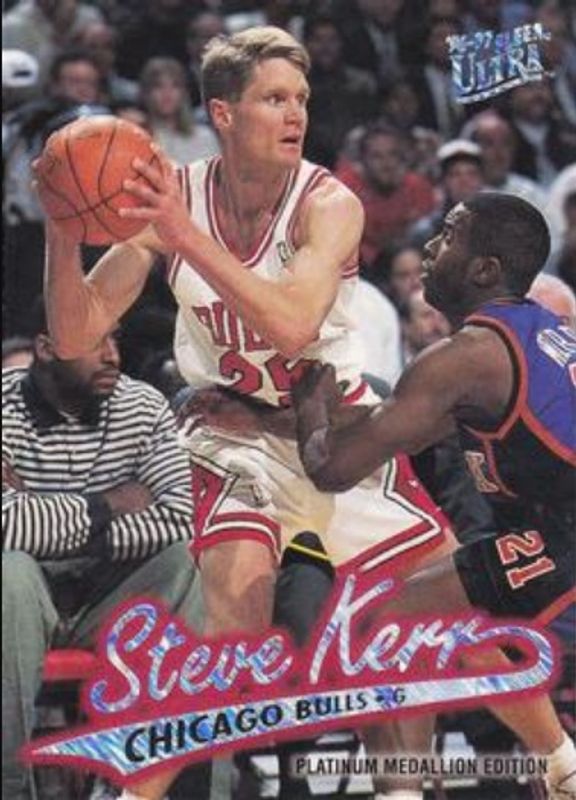 Steve Kerr's Basketball cards are available in at least 136 sets. Steve Kerr's biggest 7-day price movers are 1989 Hoops #351 Base, 1996 Fleer Ultra #P-162 Platinum Medallion, and 1996 Fleer Ultra #162 Base.