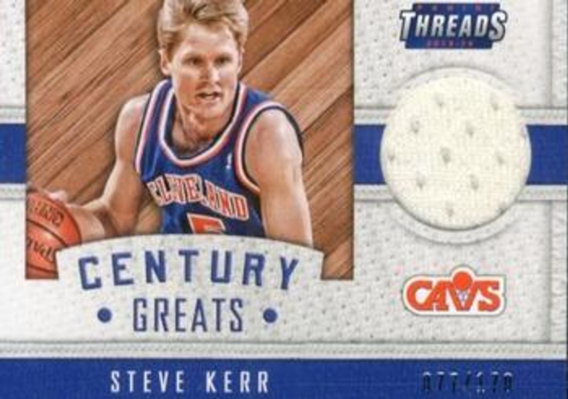 The Steve Kerr 2015 Threads #27 Century Greats Threads /199 card is 1 of 5 Steve Kerr's card variations in the 2015 Threads set being tracked by Sports Card Investor, including Voices of the Game /199, Century Collection - Materials /75, Signatures /20, and Century Collection Materials - Prime /10.