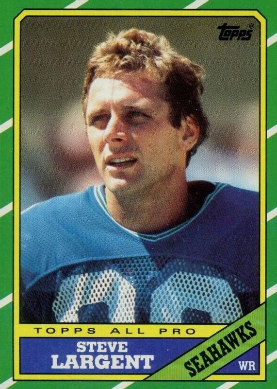 This card is 1 of 3 Steve Largent's card variations in the 1986 Topps set being tracked by Sports Card Investor, including Record Breaker, and 1,000 Yard Club.