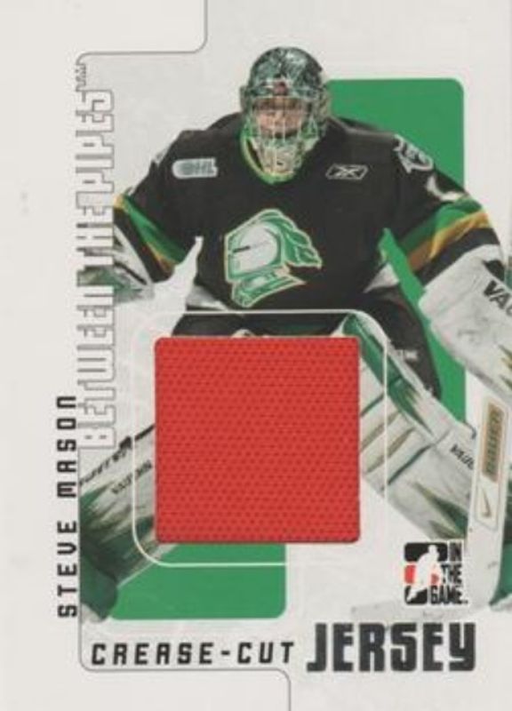 The Steve Mason 2007 In The Game Between The Pipes #CCJ-22 Jerseys card is 1 of 10 Steve Mason's card variations in the 2007 In The Game Between The Pipes set being tracked by Sports Card Investor, including Base, Autographs, Complete Jersey, Emblems, and Numbers.