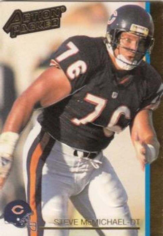The Steve McMichael 1992 Action Packed #26 Base card is 1 of 2 Steve McMichael's card variations in the 1992 Action Packed set being tracked by Sports Card Investor, including Mint /500.