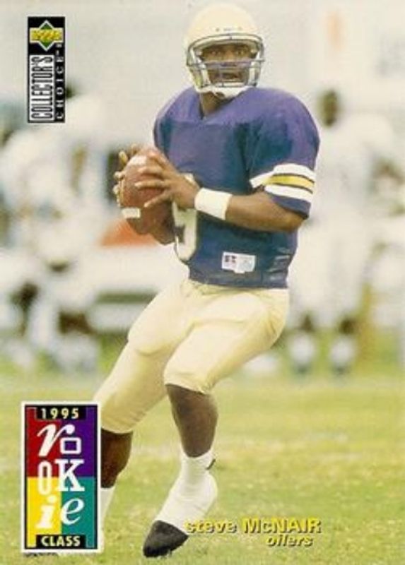 The Steve McNair 1995 Upper Deck Collector's Choice #3 Base Rookie card is 1 of 13 Steve McNair's card variations in the 1995 Upper Deck Collector's Choice set being tracked by Sports Card Investor, including #3 Platinum Player's Club, #3 Player's Club, #C10a You Crash the Game - Gold, #C10b You Crash the Game - Gold, and #C10c You Crash the Game - Gold.